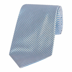 A tie design that we first made two decades ago, this tie has proven quite popular for formal events such as weddings and christenings. It is almost too smart for the office. Woven for us by the oldest family owned mill in England which have been weaving silk since 1720.