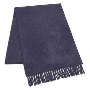 This yarn dye navy cashmere scarf was woven in Yorkshire from Mongolian cashmere, by a firm of weavers who have been weaving for over two and a half centuries. We consider them to be the best English cashmere weavers out there. They are different from our Scottish weavers, in that the fabric has even more body, and is denser, which make them less springy, and marginally not as soft, but warmer. The differences are so marginal, we are really splitting hairs here.