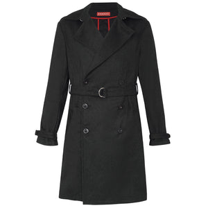 Based on an Italian trench coat from the 1970s, we chose an Italian base over an English one as we felt it had more swagger and was more contemporary with the wider wrap. We made a proper closing lapel and neck with a single wide throat hook to keep the elements out. Featuring a belted waist and sleeves with double "D" rings, these are superior in our opinion to the pronged belt and eyelets, which are more cumbersome, the eyelets tend to unravel and the belt prong tends to get bent or worse comes off.