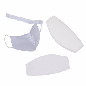 A version for children was developed due to popular demand in the same blue pin stripe fabric with a specially finished cotton fabric that is liquid repellant, anti perspirant and washable - so reusable. The liquid repellancy means any droplets bead off the mask. There is an internal pocket for a disposable non woven filter for high particle retention. Each mask comes with 31 disposable filters allowing for a month of wear. The mask should be washed daily after a full day of use at 60 degrees celsius, and a new filter put in for the next's days use when the mask is completely dry. This mask can be washed up to 30 times. After that, the special liquid repellant finish has been washed off from the mask, and then the masks functions like one made of ordinary cotton, without the special properties.