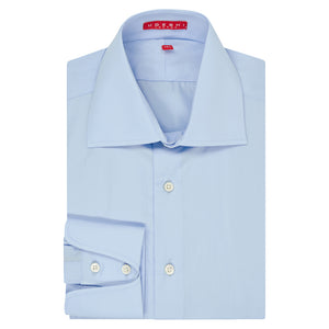 This is the definitive classic blue for a fine business shirt. Our classic collar is based on that worn by Sean Connery in the early James Bond films - same spread, same collar point depth, same collar height - all passed on to us by a master shirt maker who was there when Sean Connery was being fitted. It's great with a tie or worn open, casually.