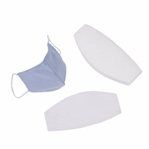 Our masks are made by our shirt maker in a specially finished cotton fabric that is liquid repellant, anti perspirant and washable - so reusable. The liquid repellancy means any droplets bead off the mask. There is an internal pocket for a disposable non woven filter for high particle retention.
