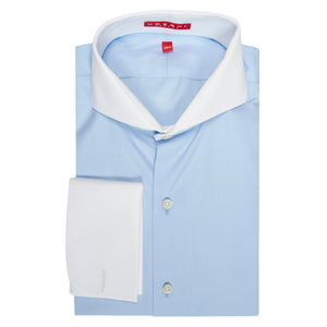 The Extreme Cutaway is one of our signature collars, with the fold-over sweeping back nearly to the yoke and lending an almost Edwardian elegance. This collar was developed through a range of trials, not just to obtain the optimal shape, but also the right balance of stiffness and comfort. Not for the faint hearted.