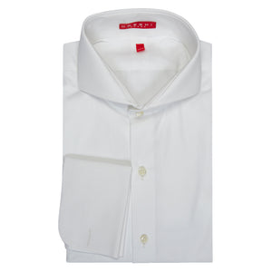 The Extreme Cutaway is one of our signature collars, with the fold-over sweeping back nearly to the yoke and lending an almost Edwardian elegance. This collar was developed through a range of trials, not just to obtain the optimal shape, but also the right balance of stiffness and comfort. Not for the faint hearted.