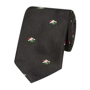 Handmade by the oldest silk weavers in England (weaving silk since 1720) all of our silk ties are self-tipped - meaning that whilst many other tie makers will use a cheaper silk or polyester to line the envelope on the underside of a tie, we carry on the motif and use the same fabric as the main body. Likewise our tie loops are also cut in the same fabric and are secured on all four corners. The front blade is cut on the true bias to prevent twisting and longer than is customary so that the seam is not visible when worn.