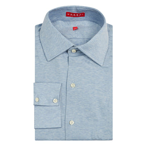 Knitted in Italy for us by Canclini, who have been producing fabric since 1925, their fine flat knit makes an extremely comfortable and relaxed shirt. The silky knit stretches and feels like your favourite soft washed T-shirt, possibly even softer and more luxurious. Available in white, blue melange and grey melange.