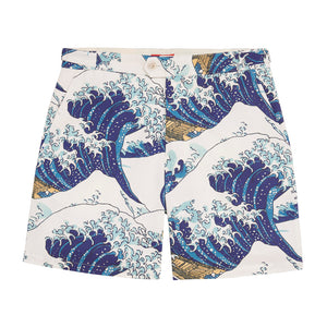 Oscar is a big fan of Japanese prints, in particular Hokusai's work. Probably his most famous piece is the Great Wave off Kanagawa. When Oscar found fabric printed with this iconic image, he couldn't resist. One of his friends, an art dealer immediately had to have a pair, so we decided to offer it to all our clients. Great for summer shorts or khakis, these shorts are not meant for the office, unless your office is the beach.