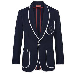 The original club jackets were rowing blazers, cut in an unstructured fashion, with contrasting trim and the club’s embroidery on the breast pocket. This jacket borrows this DNA and reinterprets it for the man who no longer needs to or cares to join a club to demonstrate his social status. He knows he has already arrived.