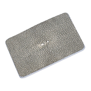 Made of hand selected skins chosen by Mr. Udeshi personally, only one in thirty skins makes the grade to be used in our stingray accessories. Crafted using traditional Florentine techniques and vegetable pit tanned leather, the card holders are soft and flexible yet strong and long lasting. Working with stingray requires a specialized technique as the skin at the edges is like leather, but the central white pearls are like ivory. The individuality of the skins and the tanning process makes each stingray item truly unique. . The cardholder can accommodate five cards with one compartment being hidden, ideal for storing emergency cash.