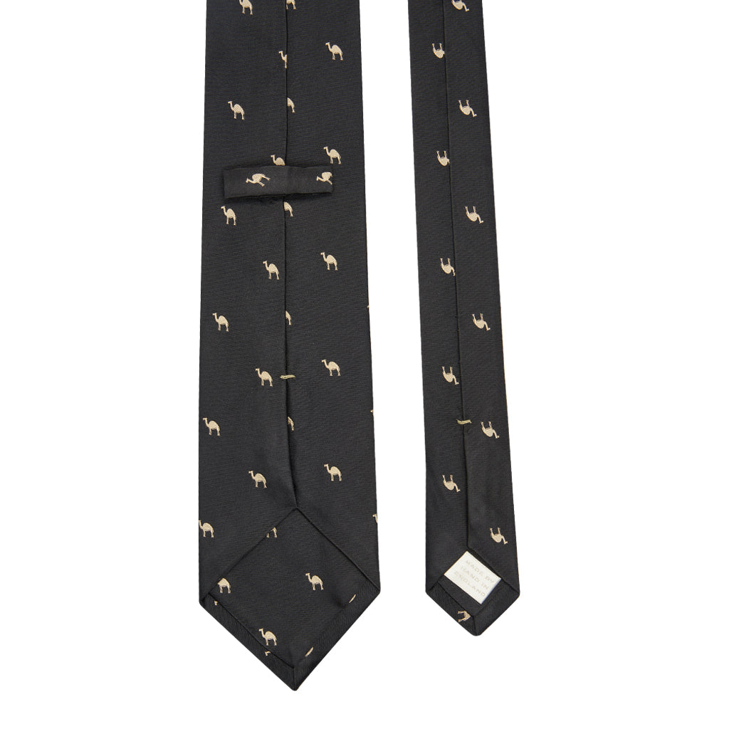 Handmade by the oldest silk weavers in England (weaving silk since 1720) all of our silk ties are self-tipped - meaning that whilst many other tie makers will use a cheaper silk or polyester to line the envelope on the underside of a tie, we carry on the motif and use the same fabric as the main body. Likewise our tie loops are also cut in the same fabric and are secured on all four corners. The front blade is cut on the true bias to prevent twisting and longer than is customary so that the seam is not visible when worn.