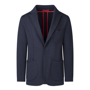 Made of soft Italian wool jersey, this knit fabric has stretch and allows space "for lunch" - allowing the waist to expand and does not limit movement, making it incredibly comfortable. It makes a great travel jacket as it is also soft and warm, and can take a beating. One of our clients uses the jacket as a pillow on long journeys.